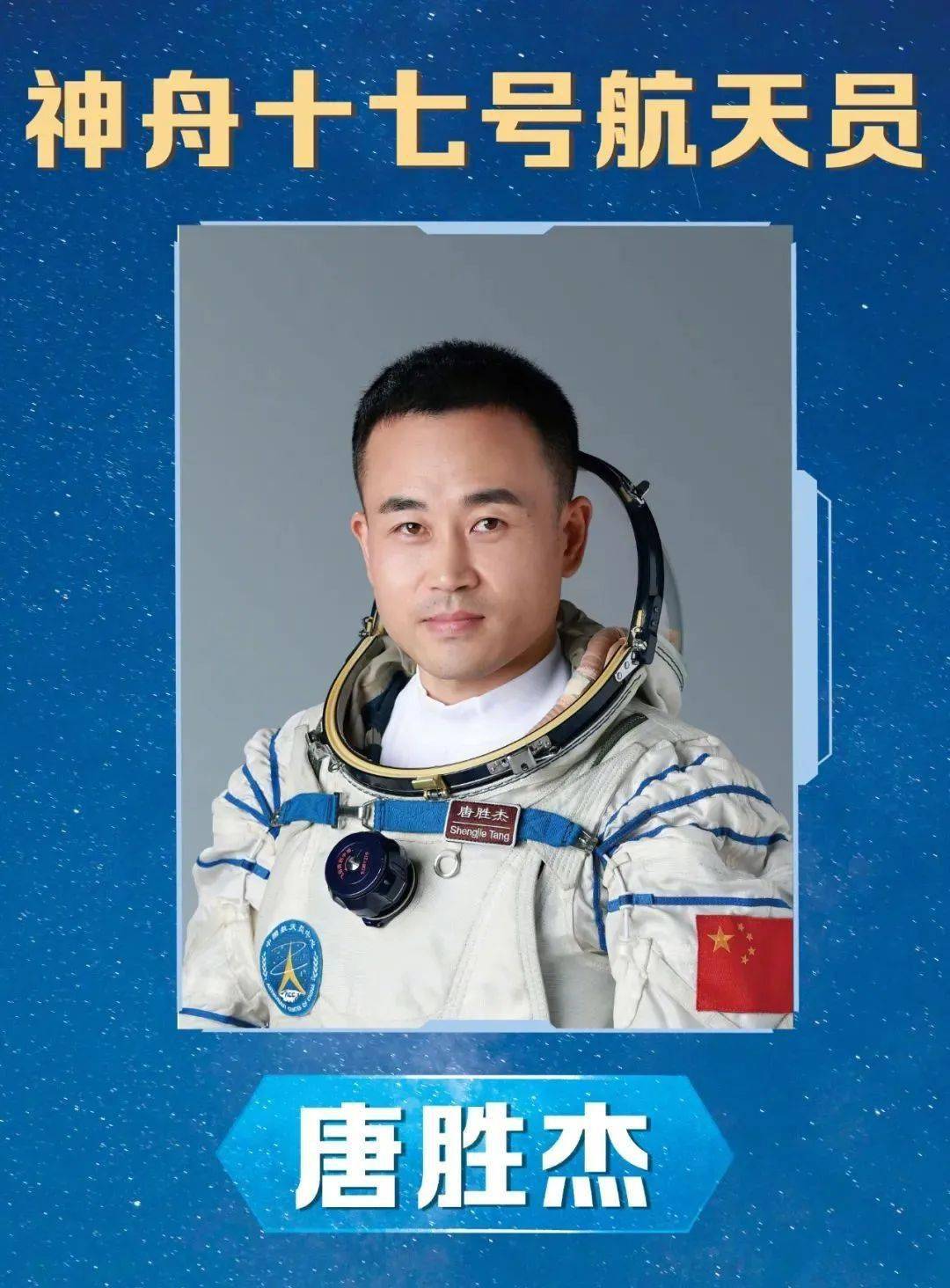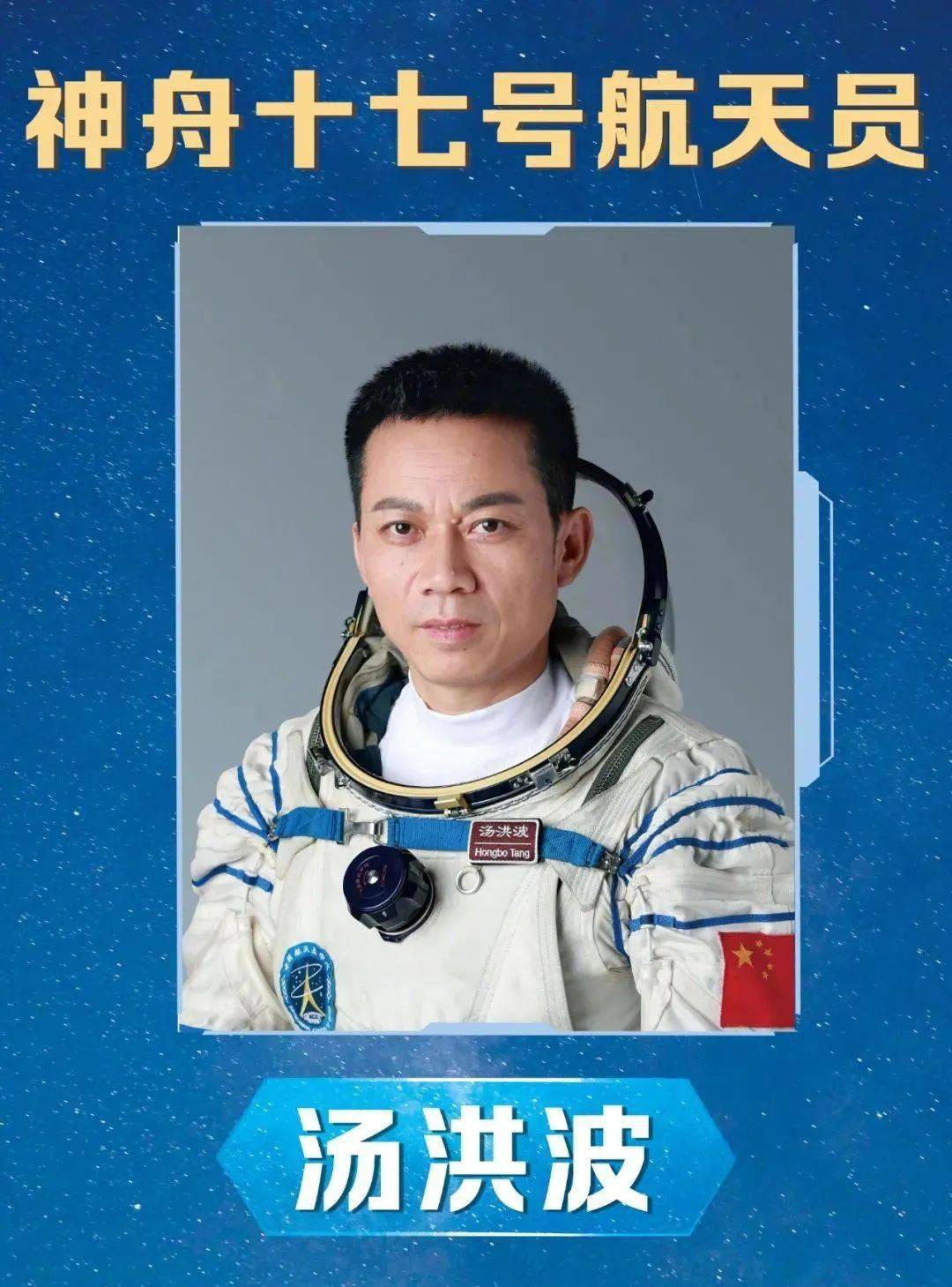 经空间站应用与发展阶段飞行任务总指挥部研究决定,执行神舟十七号载人飞行任务的航天员乘组由汤洪波、唐胜杰、江新林3名航天员组成,汤洪波担任指令长。乘组包括1名第二批航天员和2名第三批航天员,是空间站建造任务启动以来平均年龄最小的航天员乘组。