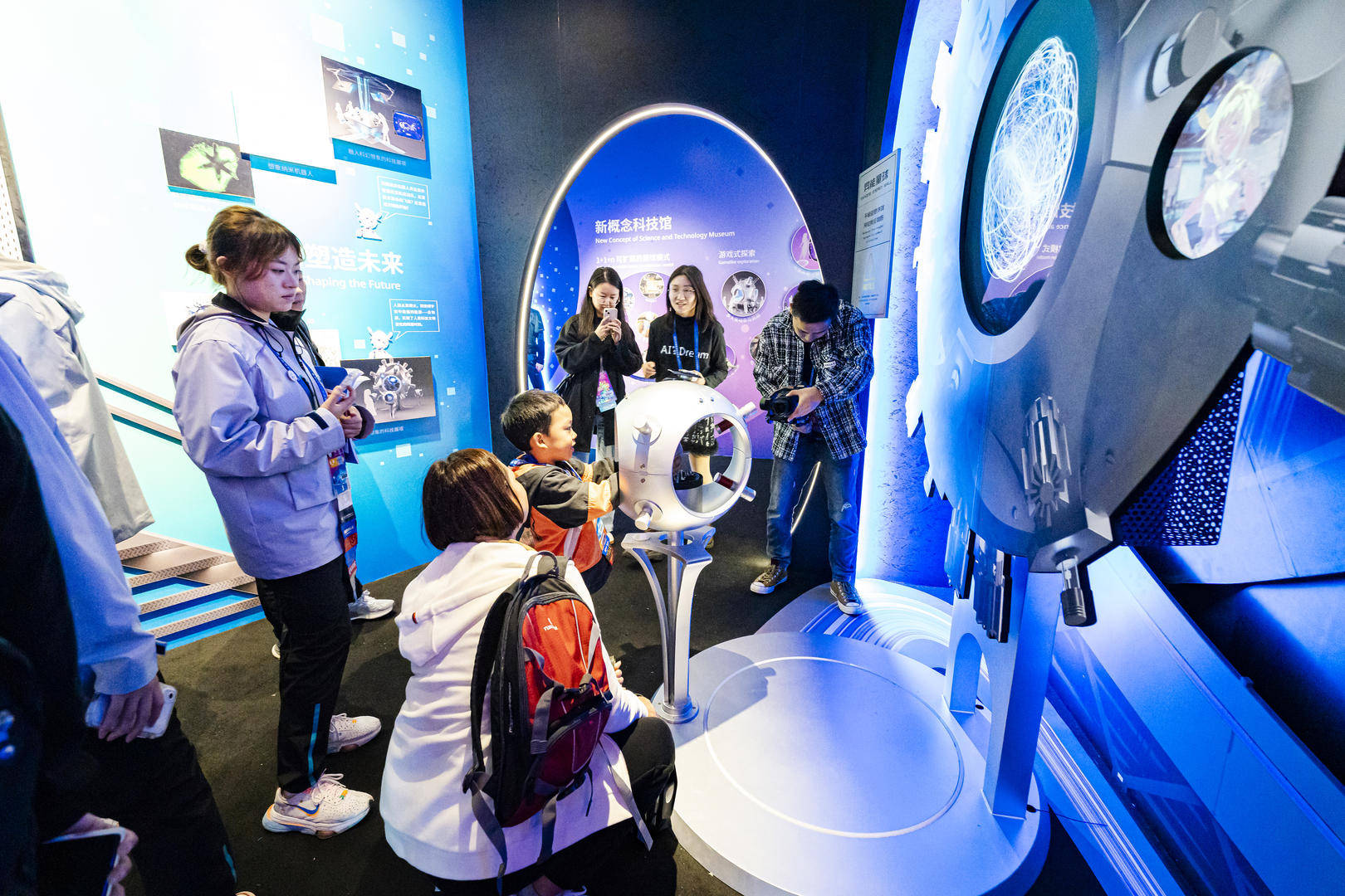 ↑世界科幻大会期间,市民在展区参观体验。图据视觉中国