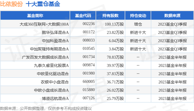 重仓比依股份的前十大基金见下表: