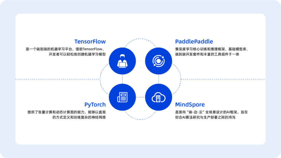 在软件方面,统信UOS服务器版已经适配众多主流的人工智能框架,如TensorFlow、PyTorch、MindSpore和PaddlePaddle等,不仅覆盖人工智能开发需求,还提供了丰富多样的工具集,使开发者能够在自然语言处理和计算机视觉上展开深入研究和探索。