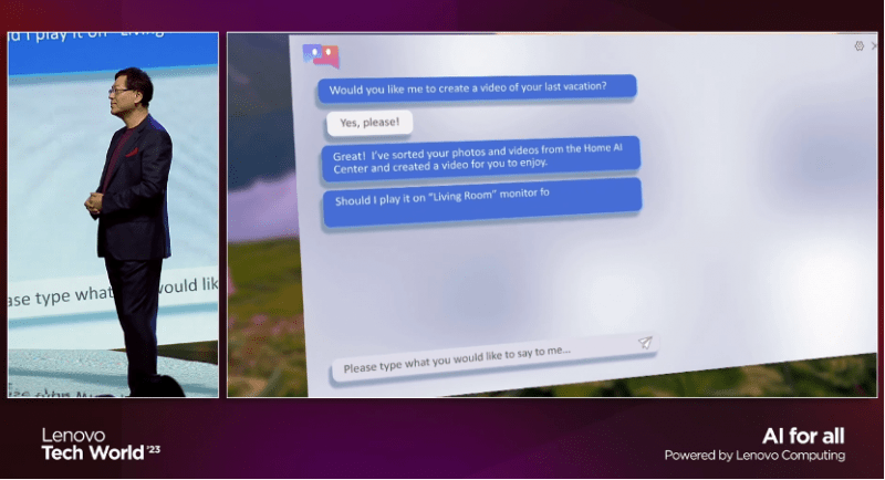 他表示,这是联想正在与战略合作伙伴们一起努力的方向,把人工智能技术带给用户,带给每一个人,让它变得触手可及。用不了多久,在你的AI PC上,你就能够创建本地知识库,运行个人基础大模型,支持人工智能计算,还能运用自然交互。