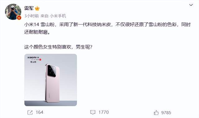 小米14系列马上将于10月26日与大家见面啦!作为小米的新机,它各位读者朋友们认为小米14系列到底会给我们带来哪些惊喜呢?是更强大的性能?还是更出色的拍照能力?或者是更长久的续航时间?我个人非常喜欢它的外观设计,而且总算是给数字系列也安排上粉色了,而且看起来颜色调的还蛮好看,是不是女米粉现在越来越多了。所以大家觉得颜值如何呢?
