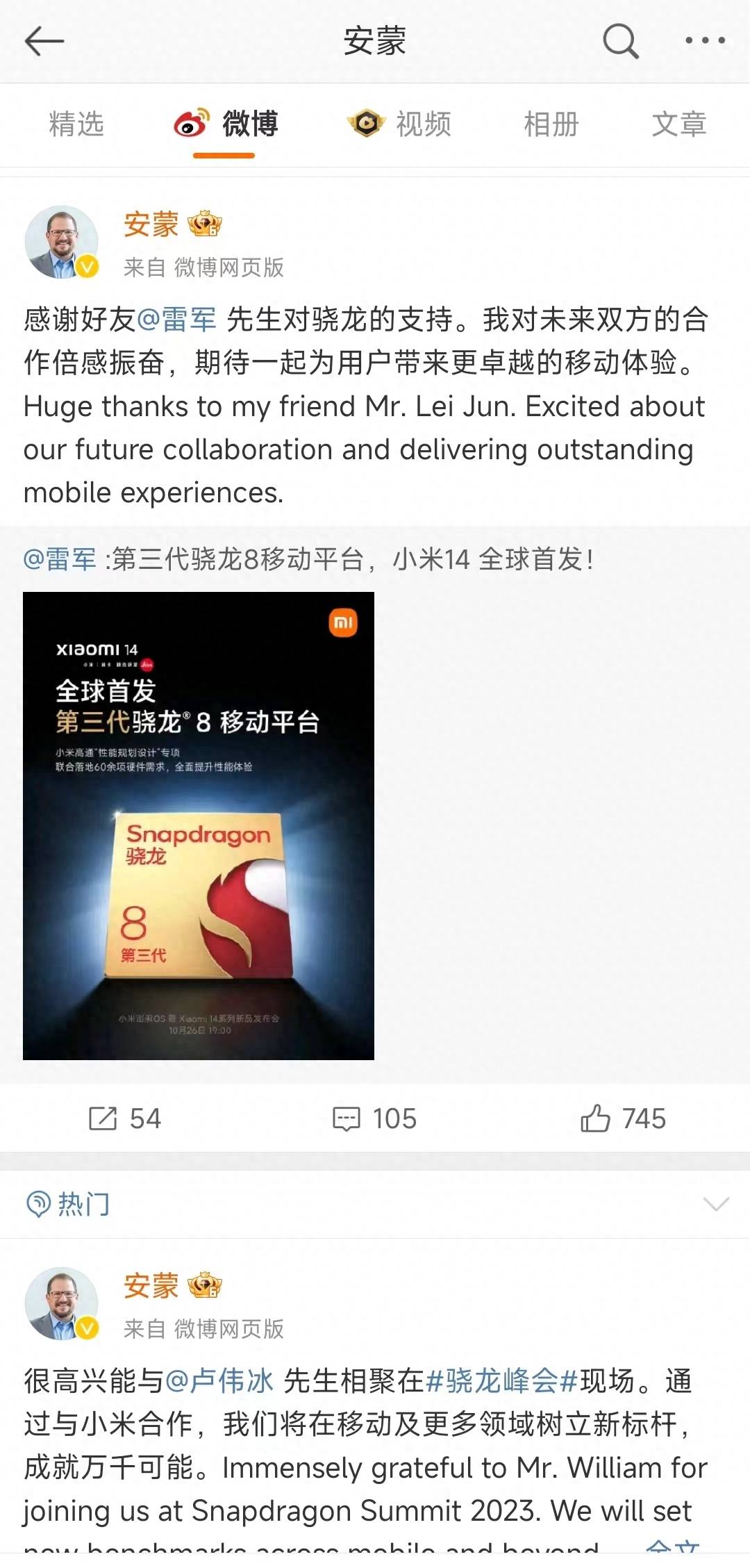 当然,光有技术打磨的实力还远远不够,想要首发还需要有较高的话语权。众所周知,小米一直是骁龙8系手机出货量遥遥领先的厂商,因此高通自然极为重视这个大客户,这点从以往的情况,以及骁龙8 Gen3亲自邀请卢伟冰参加就能看得出来。需要知道的是,厂商之间在合作上都是出于共赢的目的,高通也是非常需要小米、依赖小米,要不然高通CEO也不会发文感谢雷总的支持了。