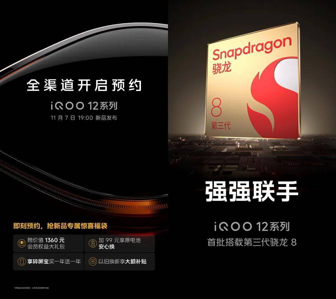 据预热iQOO 12系列将于11月7日19点发布,目前已经在全渠道开启预约,官方还称iQOO 12系列将首批搭载骁龙8 Gen3,将重新定义性能「芯」标准。