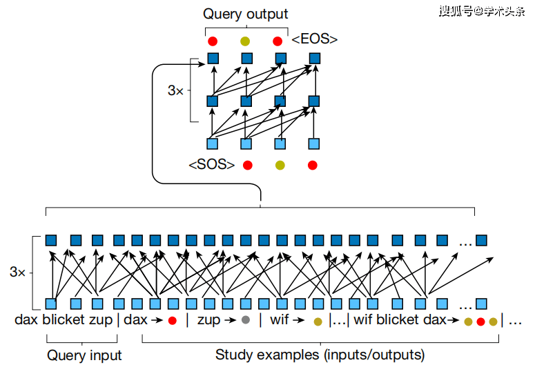 在机器学习的语境中,当泛化使新的情节相对于训练情节处于分布中时,元学习策略会成功,即使特定的测试项目相对于情节中的研究示例是超出分布的。然而,仅仅依靠元学习不会使标准网络能够泛化到相对于元学习期间呈现的情节而言又超出分布的情节。当前架构还缺乏发出新符号的机制,尽管可以通过附加的指针机制来引入通过研究示例引入的新符号。