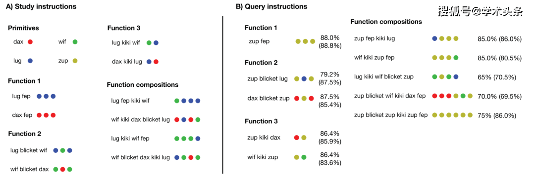 为了展示 MLC 的能力,研究人员在相同的系统性泛化测试中将人类和机器进行了并行评估。具体来说,他们使用了伪语言中的指令学习任务来检查人类和机器对结构化代数系统的学习能力,并通过少样本学习的方式来评估人类的系统性泛化能力。