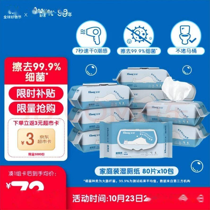 平日里囤货最多的是卫生纸、抽纸等纸巾商品,京东超市售卖的舒洁湿厕纸80抽版10包,不到77块,其他电商每包要多花4块钱!京东超市明显量大更便宜。