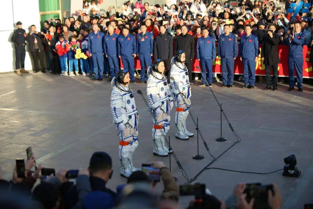 北京时间2023年10月26日8时24分,神舟十七号载人飞行任务航天员乘组出征仪式在酒泉卫星发射中心问天阁圆梦园广场举行。