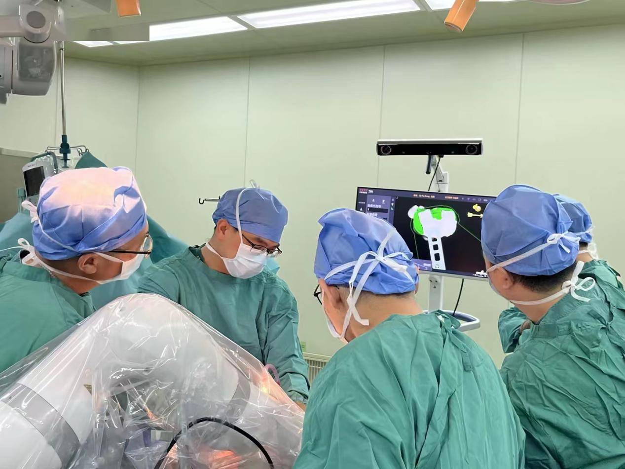 在锟铻®手术机器人的协助下,南山医院骨关节科的李康养主任医师进行了首台机器人辅助下的全膝置换手术。患者为68岁的祁女士,双侧膝关节重度关节炎,活动受限10余年,行走困难且双膝关节屈曲受限,屈曲度在100度左右。