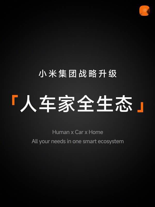 会上,雷军正式对外宣布小米集团战略全新升级,从以往的“手机 X AIoT”,升级到“人车家全生态”。