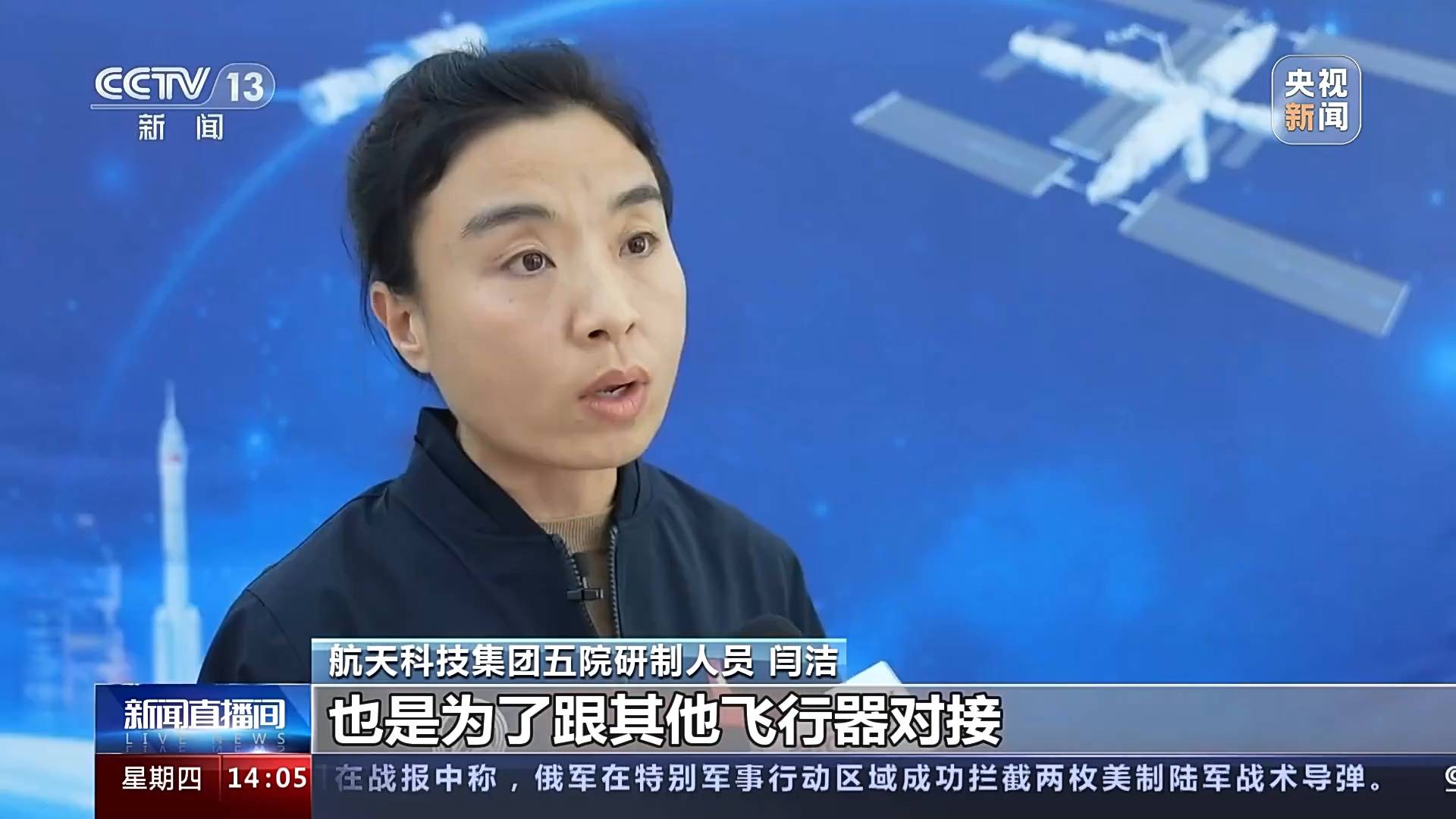 航天科技集团五院研制人员 闫洁:附加段原来是有的,从最开始的设计上也是为了跟其他飞行器对接。后来神舟七号任务的时候,因为有出舱任务,根据任务特点我们就把附加段取消了,在轨道舱上进行了出舱功能的相应技术调整。神舟八号我们采用对接机构与天宫一号实现交会对接技术。神舟十二号开始到神舟十五号,我们考虑要进行空间站应用发展的新阶段了,要进行一个技术的固化。