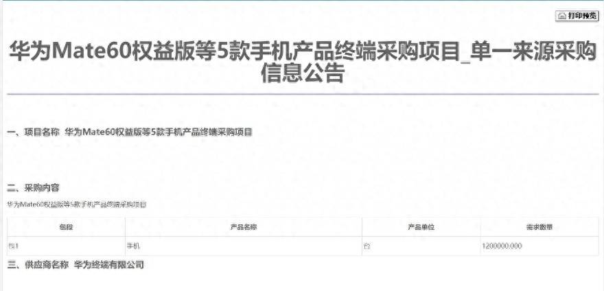 首先,根据新京报报道,中国移动日前采购了华为Mate60权益版等5款手机,需求数量为120万台。中国移动采购这么多Mate60手机,自然是看到了这款手机的需求以及带来的利润与业务增量非常大,可以强劲带动运营商渠道的购机需求,推动合约机销量。