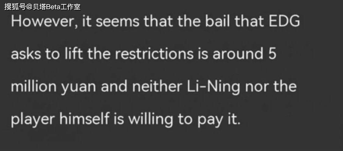另外外媒也爆料:EDG对Scout的限制保证金是500万,但是LNG和Scout都没有出这个钱。也就是说都不愿意支付保证金,Scout的经纪公司透露Scout的卡被冻结了,所以没钱付,而LNG则是宁愿租借牙膏,也不愿意出这笔钱。