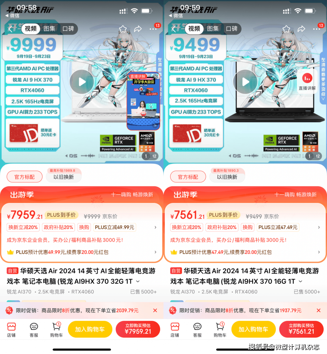 对于喜欢更加轻薄的游戏本,华硕推出的天选Air也有实惠的好价格,比如锐龙AI9HX 370 16G 1T RTX4060机型价格仅7500元左右,而更高配置的锐龙AI9HX 370 32G 1T RTX4060的机型更是不到8000元。
