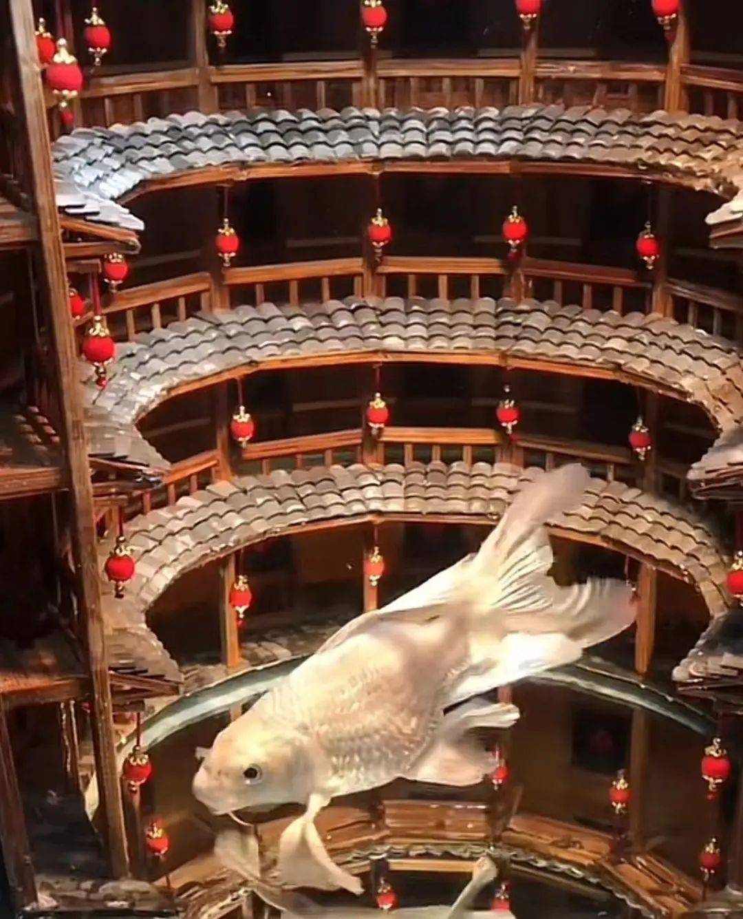 搬进了鱼缸里,