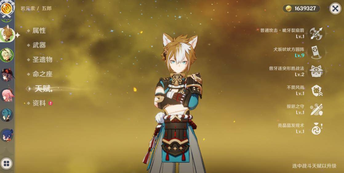 还可以选择烬城勇者绘卷,在纳塔体系里可触发夜魂迸发,能够恢复元素能量,四件套是在造成岩加水、火、冰、雷等反应时,为所有队友来提供相关的元素加成,比较适合在组建岩队时使用。昔日宗室之仪会让五郎在使用元素爆发后,为队伍里所有角色提供攻击力,但是由于该角色的定位问题,通常会与诺艾尔、荒泷一斗等防御体系角色上阵,所以最终生效的攻击力收益加成其实并不高,该圣遗物的选择优先级自然下降。