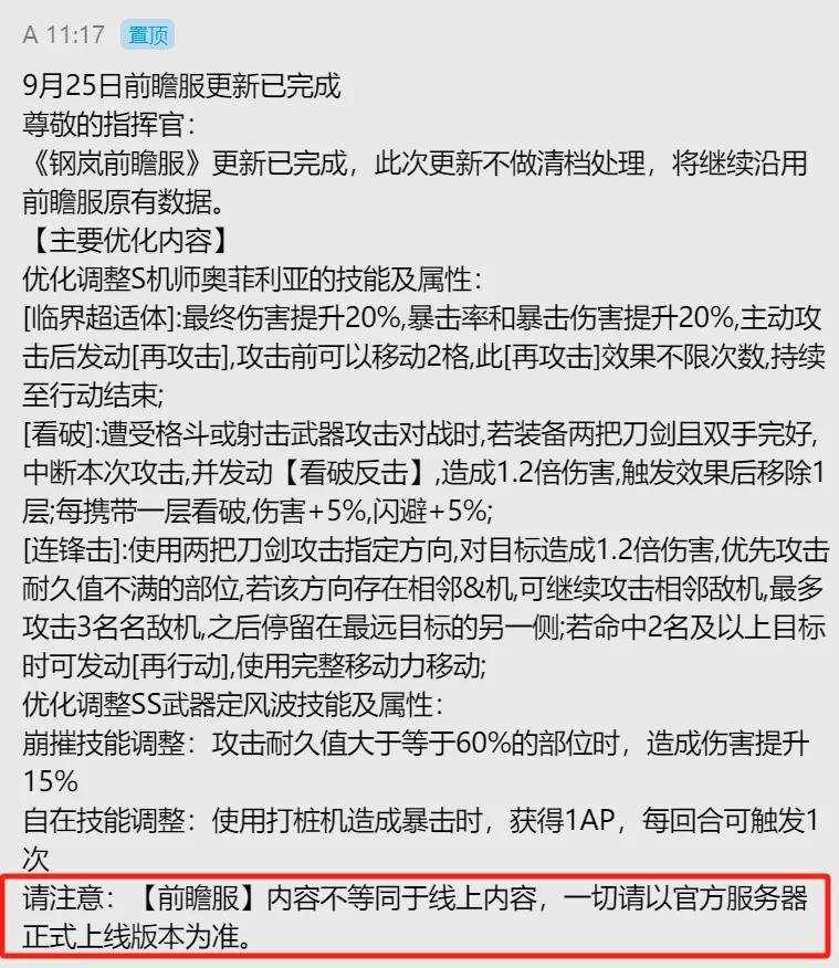 今天官方也是把之前定下的改动方案给实装到测试服里边了,说实话过去在测试服中出现二次改动的情况较少的,一般来讲测试服里被喷的内容,官方会直接在登录正式服的时候一并修改,不过此次也是临到头最后一天来了个更新,而且还在更新通告的末端加上了“前瞻服内容不等同于正式服内容的字样”,其一是为了规避一些“改动”方面的衍生风险,毕竟隔壁天地劫吃这个亏也吃了不少次了,其二则是为了给自己再留一点余地,一点修改的余地,例如这次改了后临时觉得奥菲利亚要还不行的话,可能今天晚点还能再改改?