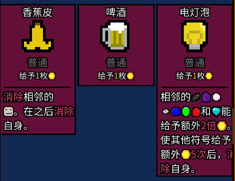 每次获得金币后,会出现三个图案,可以选择一个加在老虎机上。