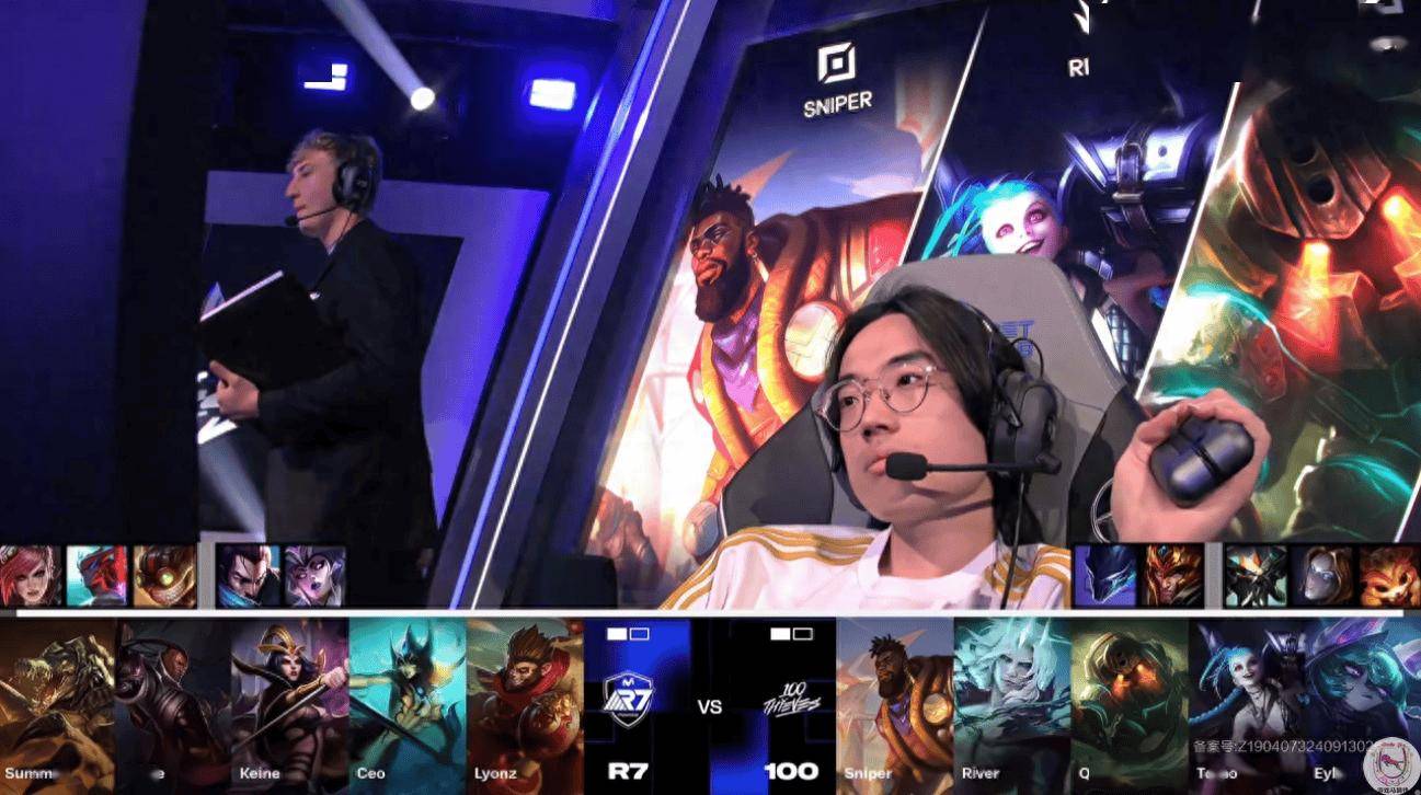 这两队中单都是韩援,R7的甚至年龄更大,相差5岁。结果没想到100T的韩援中单最后一局不是拿传统的Counter丽桑卓去针对妖姬,而是选择了薇古斯,结果自己最后一盘打出了1-9的逆天超鬼数据。而R7的中单妖姬自信杀人书,前中期打出无解肥优势,最后拿到了11-3的数据。