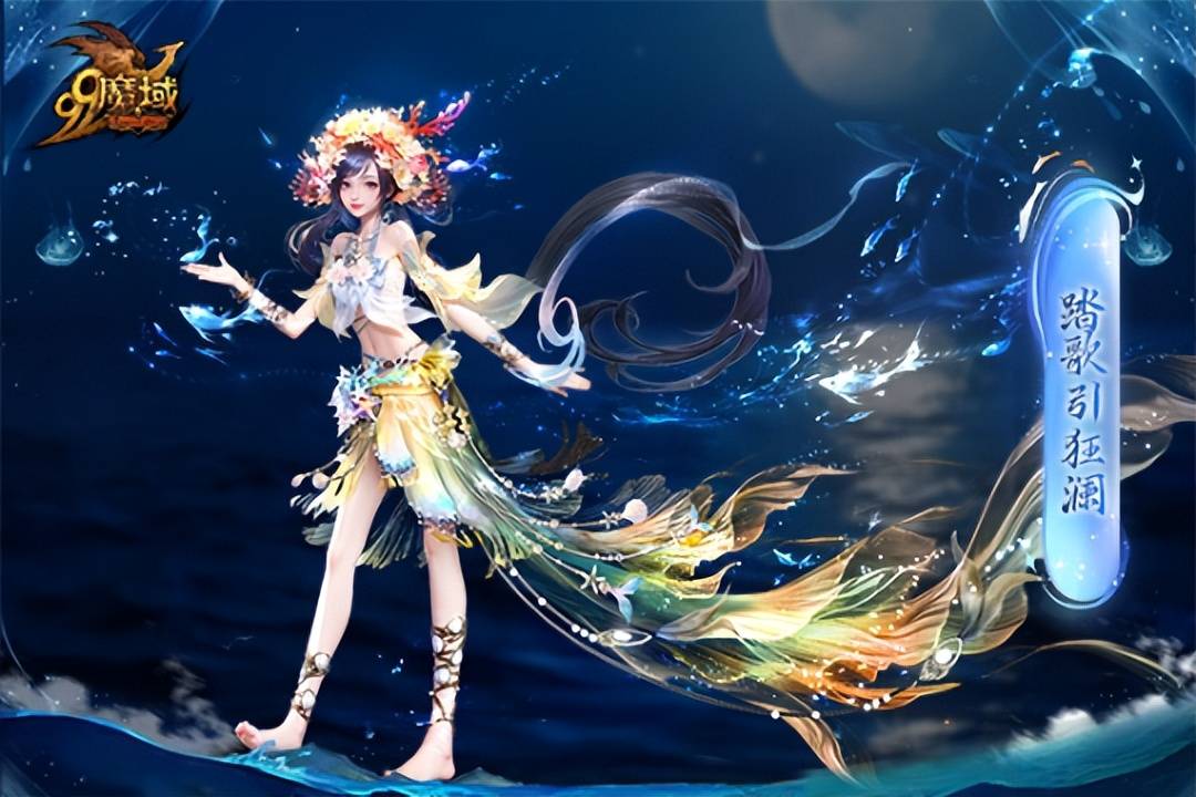 因此,《魔域》在渔歌的造型设计上,提供了截然不同的美学风格供选择:既有明媚灵动的渔女形象,也有衣袂翻飞的深海女王姿态。唯一不变的是头上明媚迎风招展的簪花围。这种多变性不仅丰富了角色本身的魅力,也为玩家提供了更加多元化的体验。