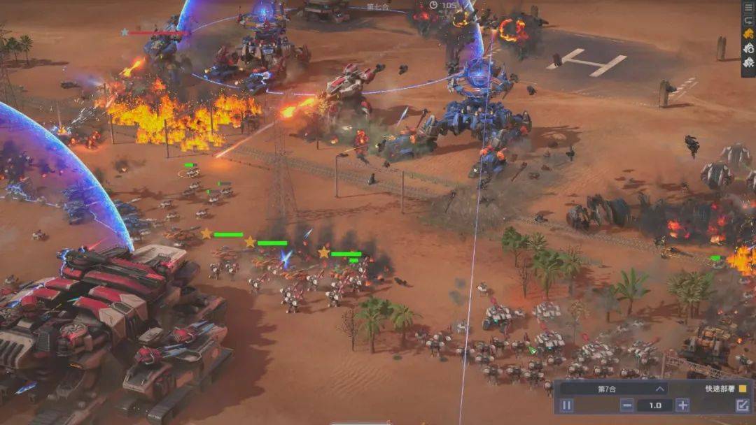 《钢铁指挥官》的对战往往不会在一个回合就结束,单个回合的胜利只会根据胜利方剩余单位的数量和质量扣除对手总血量。在下个回合开始前,双方参与战斗的单位都会“满血复活”,回到初始位置,而玩家可以升级单位、解锁科技、部署消耗品或者投放新单位。