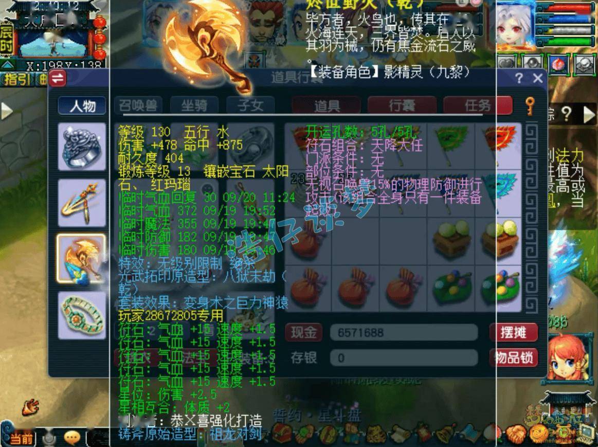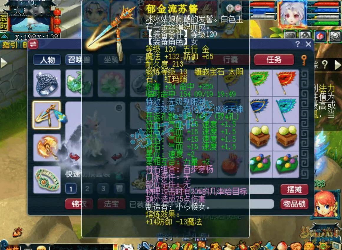 120级无级别变化咒之巡游天神套女头,打了3锻太阳石、10锻红玛瑙!