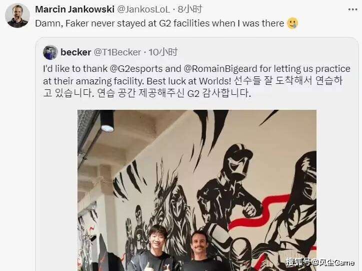 去年全球总决赛的时候,举办地在韩国,当时G2也是入驻了T1的基地,双方算是有来有往了,不过前FNC战队AD欧城,今年也跟着T1去欧洲当替补了,FNC这不邀请一下T1,吸一波Faker的流量吗?不过个人感觉,LEC的队伍,应该都邀请T1了,但最后T1卖了G2的面子,去他们基地了。