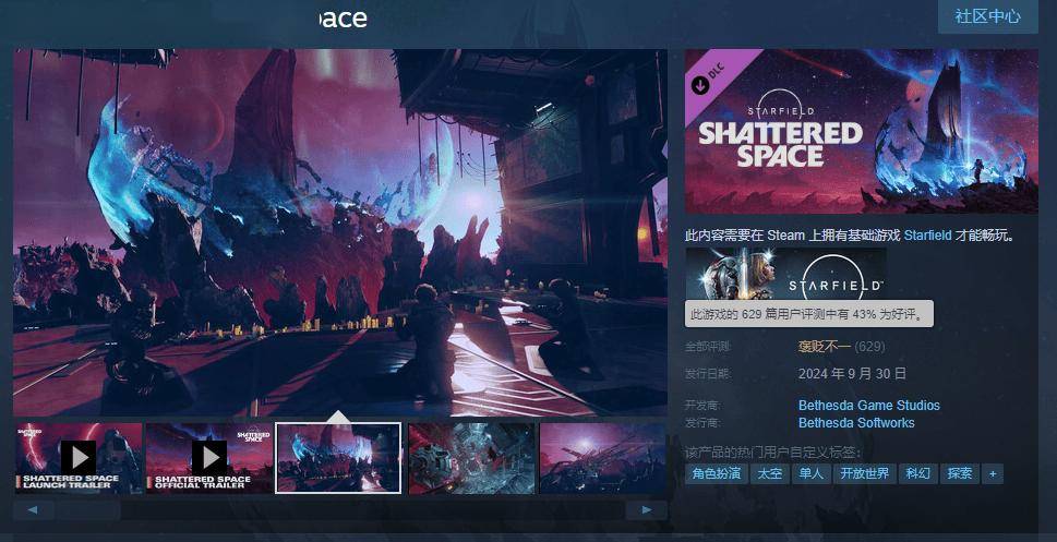 IT之家 10 月 1 日消息,B 社《星空》首个 DLC“破碎空间”(Shattered Space)于北京时间 9 月 30 日晚 11 点解锁发售,这款 DLC 在 Steam 平台国区售价为 116 元,支持简体中文界面和字幕。