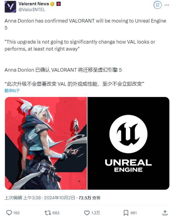 IT之家 10 月 2 日消息,《无畏契约》制作人 Anna Donlon 今日在出席 Epic 的 2024 年西雅图 Unreal Fest 活动时提到,Riot Games 正在将《无畏契约》转移到虚幻引擎 5 上。