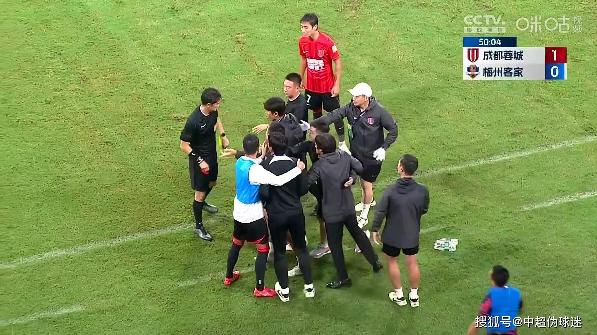 由于这两个判罚都对成都蓉城不利,这导致球队教练组对主裁判艾堃的判罚颇为不满,这为下半场的冲突埋下伏笔。