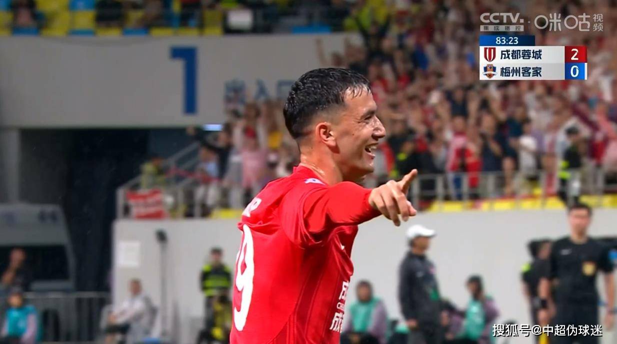 第83分钟,在梅州客家换上外援外援准备反扑之时,成都蓉城创造出机会,莱切特右路精准传中,木塔力甫禁区后点凌空打门得手,帮助成都蓉城2-0领先,比赛悬念也就此被彻底杀死。