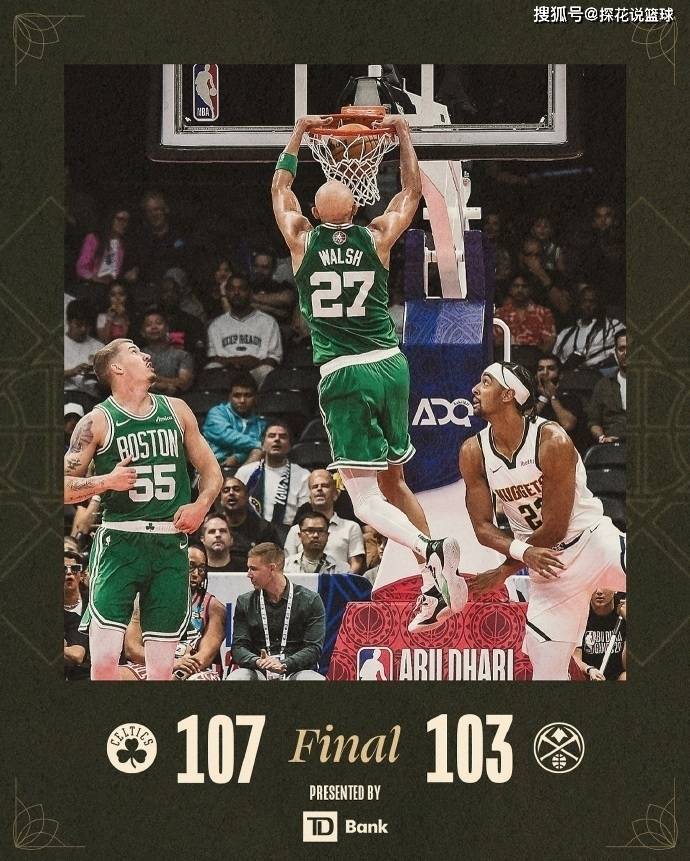 北京时间10月5日,NBA季前赛正式打响,掘金对阵凯尔特人。两队是在阿联酋对决,两队上来就在外线展开对飙,掘金占据一些主动,凯尔特人很快也是迫近比分,半场掘金领先7分;到了下半场威少带队一度取得12分领先,可随后球队陷入被动,并在末节被凯尔特人逆转比分。最终,凯尔特人107-103逆转击败掘金,取得了季前赛开门红。