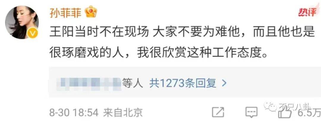 孙菲菲赶来替王阳解释,说王阳是很爱琢磨戏的好演员,当天他并不在场,让大家不要多想。