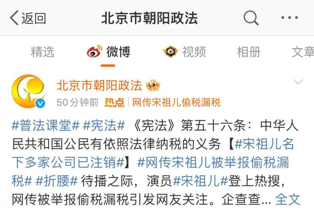 喜天影视回应后,微博认证为“北京市朝阳区政法委员会”的官方账号也跟进了宋祖儿此事件,表示“公民有依照法律纳税的义务”。