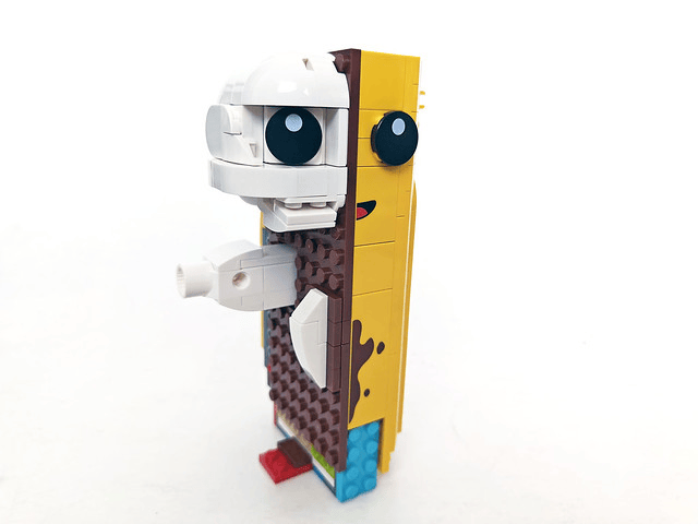 最后,我们打造了一个搭载在香蕉形人偶手上的油漆发射器。这款武器主要由 机械组零件组成。