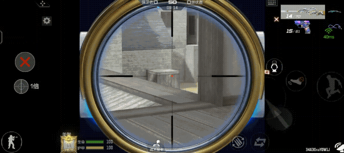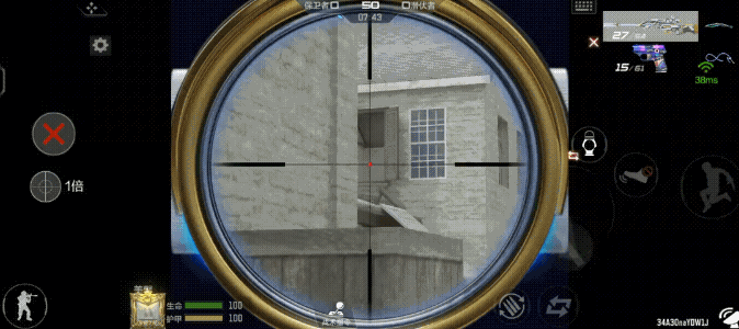 右边是在复活点一侧的墙壁边缘,这个点位需要注意房顶是否有敌人,没有的话就可以直接瞄准左边二楼窗口,有敌人在窗口可以轻松带走。