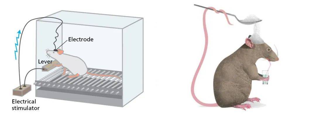 一项研究(Olds and Milner, 1954)将电极埋入老鼠脑中,老鼠按压杠杆便可刺激多巴胺,研究者发现,老鼠会疯狂按压杠杆甚至不吃不喝直至死亡。另一项研究(Berridge et al., 1989)则用药物阻断了老鼠的多巴胺活动,研究者发现,老鼠会停止一切活动,甚至饿死也不会去寻找食物,但是当研究者往老鼠嘴中滴入糖水时,老鼠依然会舔嘴唇,显示出它仍然喜欢食物。这两项研究说明,老鼠可以想要做不喜欢的事情,也可以喜欢吃不想要的东西
