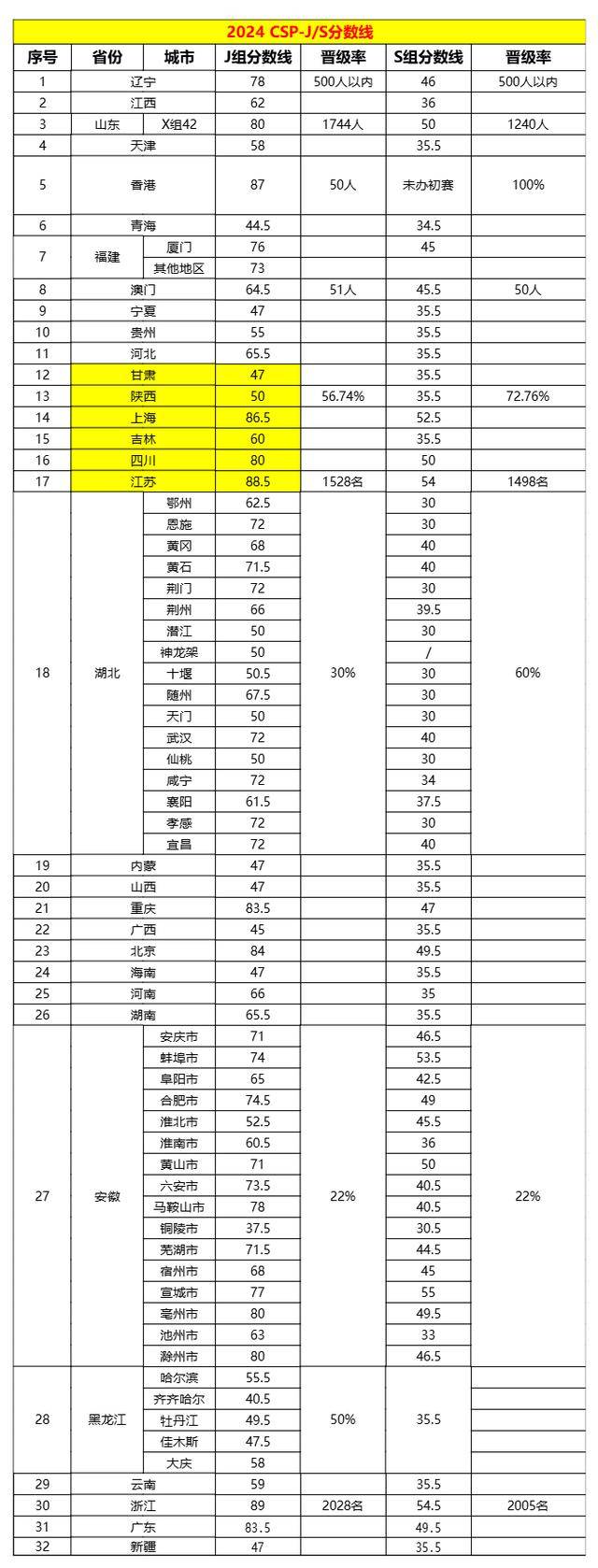 第一轮各省晋级分数线