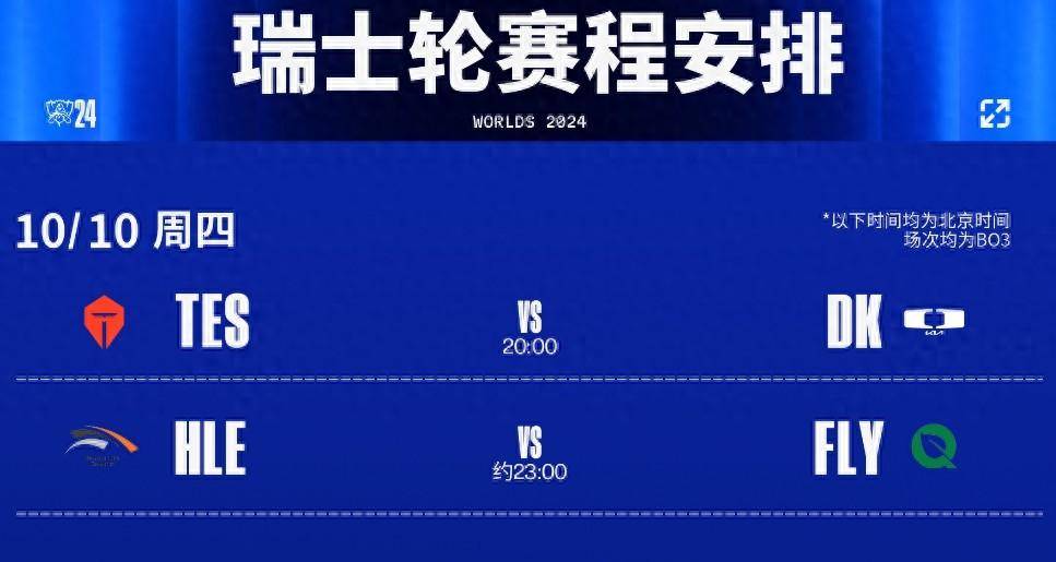 10月10日,即将迎来了英雄联盟2024全球总决赛瑞士轮2-1队伍的两场BO3对决,分别是TES对阵DK和HLE和FLY。对于这次的抽签结果,大多数LPL玩家都是觉得可以接受的,只要没出现LPL内战,那就是好签。但是这个提前是,LPL的队伍能够成功晋级下一轮,不然换个角度来想的话内战还能稳进一个,也是不亏的。