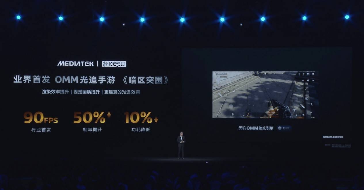 更令人惊艳的是,天玑9400率先支持媲美PC主机级的3A光追黑科技移动端天玑OMM追光引擎,可以优化光追渲染过程中的资源调配并大幅提升光追渲染效率。基于此,联发科天玑和《暗区突围》深度合作首发推出了90FPS的光追游戏体验,流畅度大幅提升,让移动光追“画质和帧率”不再是选择题,真正做到了向PC端看齐。所以,想玩光追手游选天玑就对了。