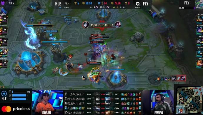 如果说TES和DK的比赛还能用兵不血刃来形容,那么原本在大家的预测中,能够赢得轻松惬意的HLE,却在对上LCS一号种子FLY时被打得满头大汗。通过一系列怪阵容和鬼点子,FLY将HLE拖进了决胜局。