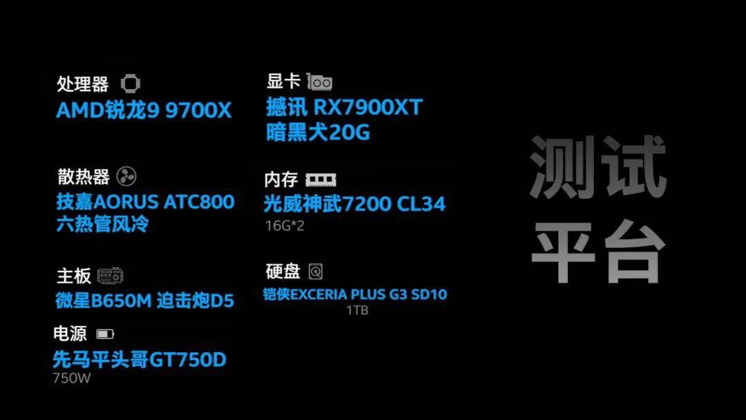 本次评测以AMD平台为主,主板为微星MAG B650M WIFI 迫击炮,CPU选择最新的Zen5架构新品——锐龙7 9700X,搭配的显卡自然是仍旧为主流最优选择的次旗舰——RX 7900 XT。具体测试平台如下: