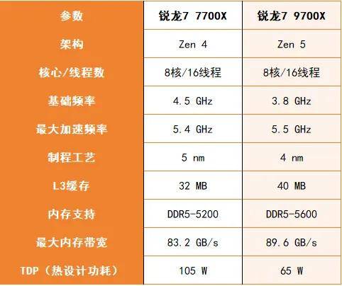 全新基于Zen5架构打造的锐龙7 9700X在IPC、制程工艺、以及单核频率、内存支持上都有不少提升,当然,不同于上一代锐龙7000系列,这一代锐龙9000最大的优势却是在能耗方面,这一点后续我们会单独讲到。