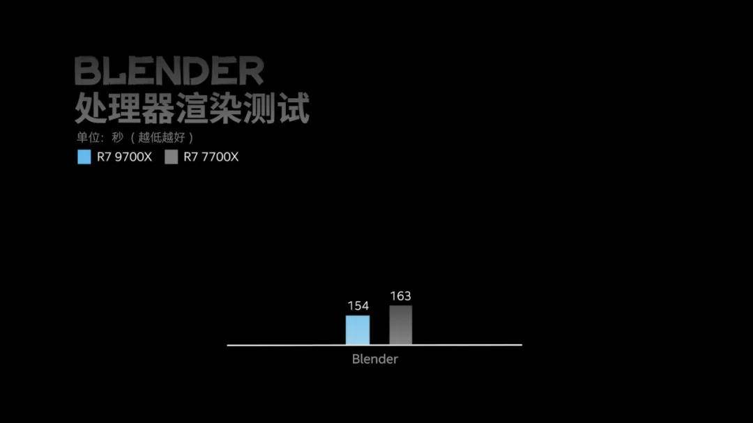 Blender渲染测试可以说是绝大部分设计类从业玩家经常接触的玩意,作为开源三维软件,适用度极高,不少玩家在考虑DIY生产力时都会参考这一测试,在我们的测试中,锐龙7 9700X渲染完同一场景要比前代快出9秒,换算为提升服务为5%左右,这与前边Cinebench R23多核渲染测试表现一致。