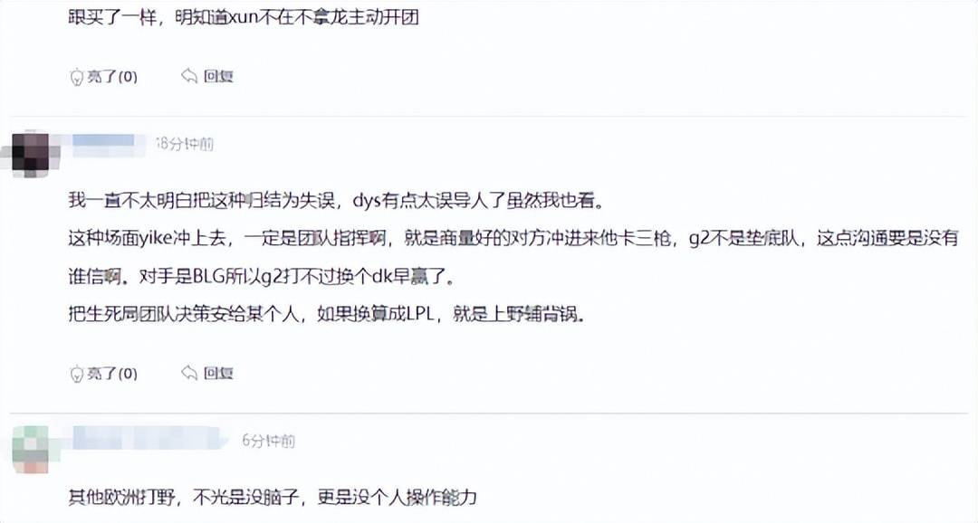 对此,网友也为这两位选手打抱不平,辅助做视野被抓就算了,打野赵信那一枪肯定是有人指挥了:“这种场面yike冲上去,一定是团队指挥啊,就是商量好的对方冲进来他卡三枪,g2不是垫底队,这点沟通要是没有谁信啊”,“辅助今年MSI还大放异彩呢,好像今年还是去年还拿过常规赛FMVP,不知道今年s赛怎么变死神了”,“大概要找韩援了。辅助和打野位置相对容易找到不错的外援”……