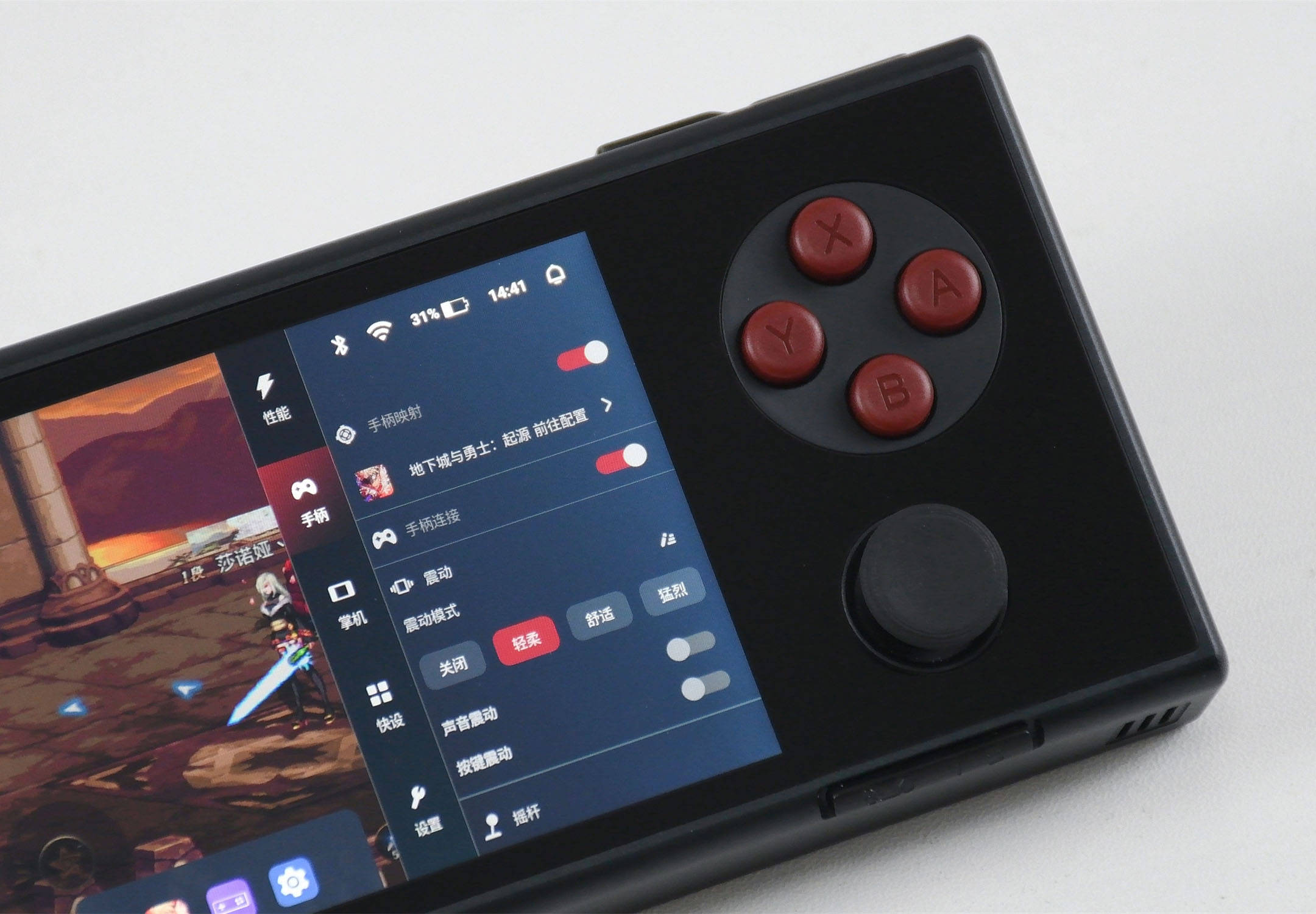 这个设置小窗在玩游戏等界面中都可以通过“AYA键”随时呼出,除了进行按键映射的设置操作外,还能进行调整性能模式、摇杆灵敏度、震动等设置,很实用的一个设计。
