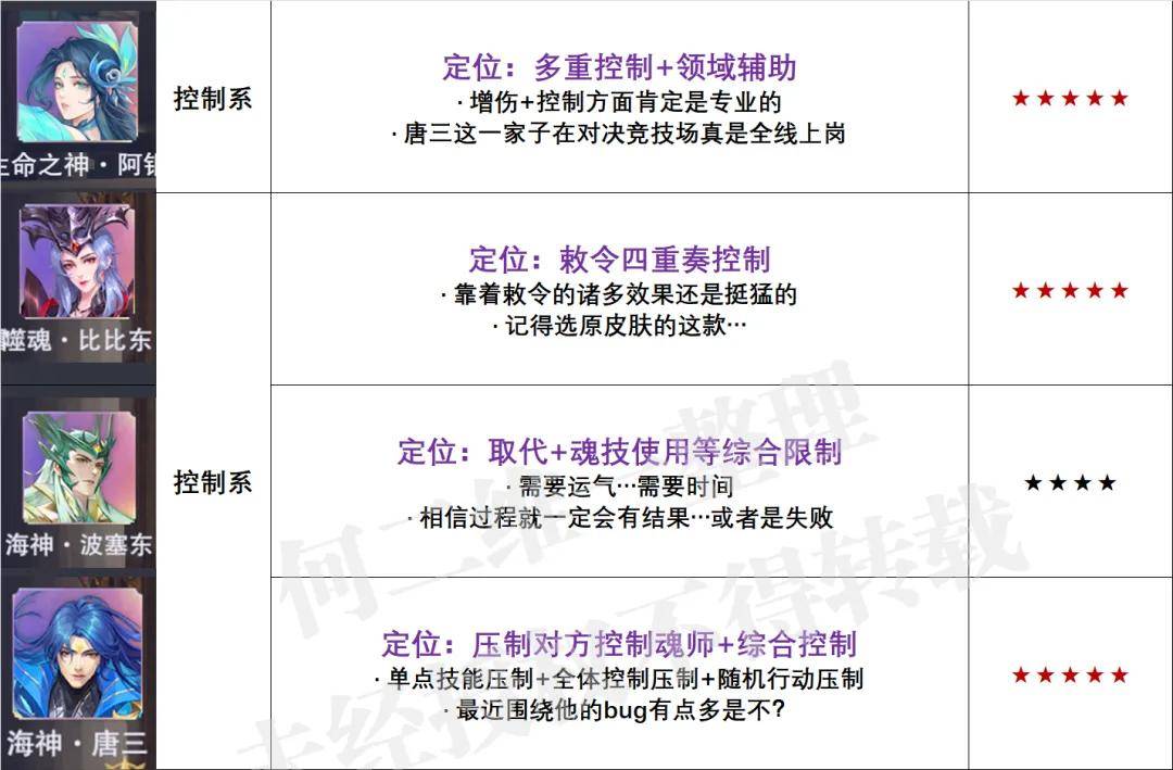 接着是SP品阶的控制系部分,SP阿银的辅助效果立竿见影,特别是2-1被动的这个开局领域/结界自动释放效果有很高的强度,接着SP比比东原皮虽然已经不比过去强势了,但综合的泛用性依然很强,压魂力效果十分出众;然后SP海三嘛大家也不陌生了,对于对方控制魂师的限制,对对方单体的技能限制等都有奇效。