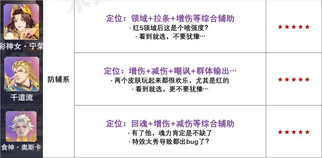 最后则是SP品阶的防辅系部分,SP宁荣荣和SP千道流......闭着眼选即可,维一一直认为对决竞技场从百花齐放到眼下的强势堆叠,这个转折点就是在于去年的SP宁荣荣和SP千道流上线,真是莫得办法,而最后的SP奥斯卡则可以提供非常可观的魂力支撑,这个玩法中的魂力是格外重要的,所以SP奥斯卡的重要性也可见一斑。