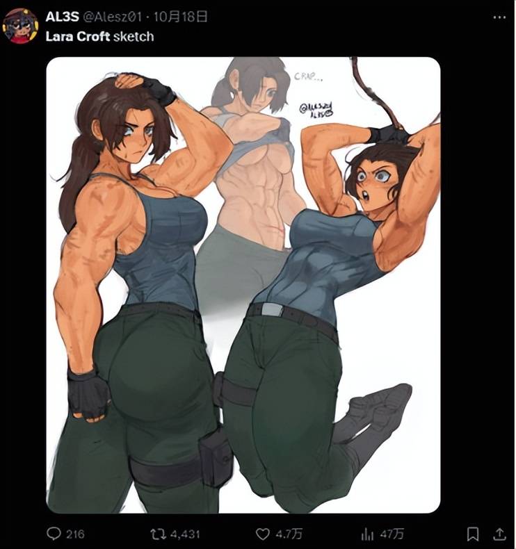 所以最近在互联网上,可以看到大家纷纷Po出自己的创作,展示他们心目中既健壮又性感的劳拉,重新诠释动画中劳拉的形象。