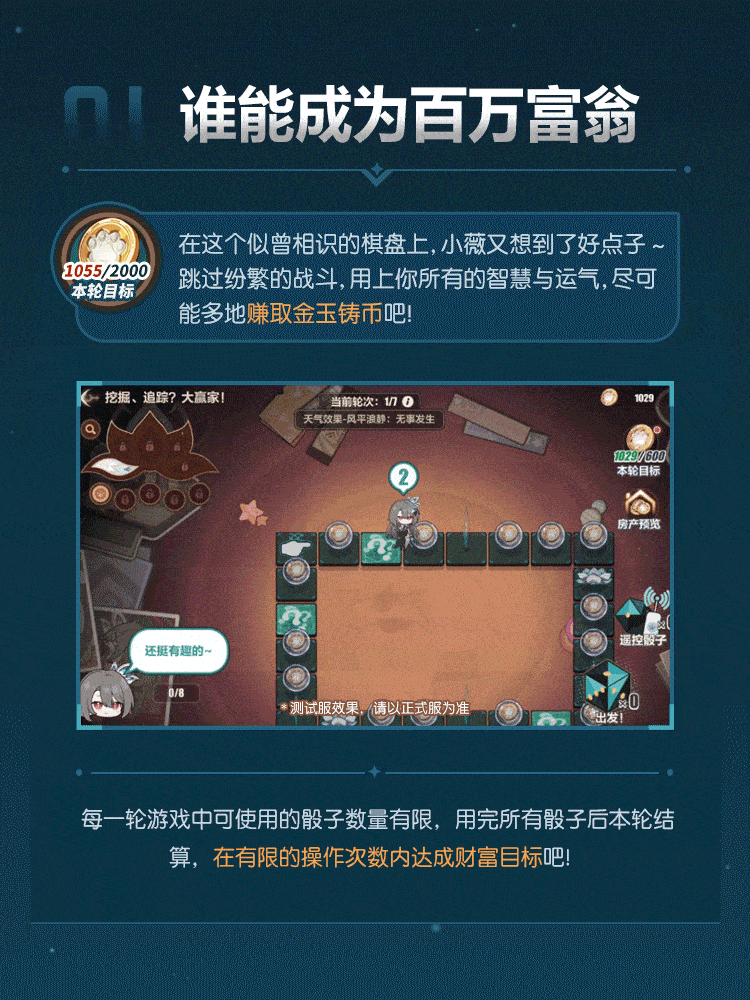 在即将到来的7.9版本中,将开放「挖掘、追踪?大赢家!」活动,快来装备花叶、掷出骰子,通过各种方式尽可能多地赚取金玉铸币吧!舰长体验主线剧情、参与相关玩法可获得水晶、根源棱镜、远古意志等奖励~